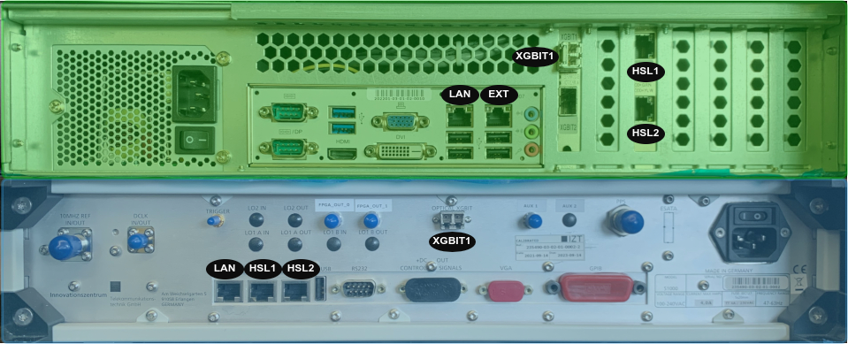 When GIPSIE® is used in combination with the IZT S1000 (opens new window), the hardware needs to be set up before it can be used for streaming generated IF files and RF signals (RTX mode). In general, the system consists of two hardware units: