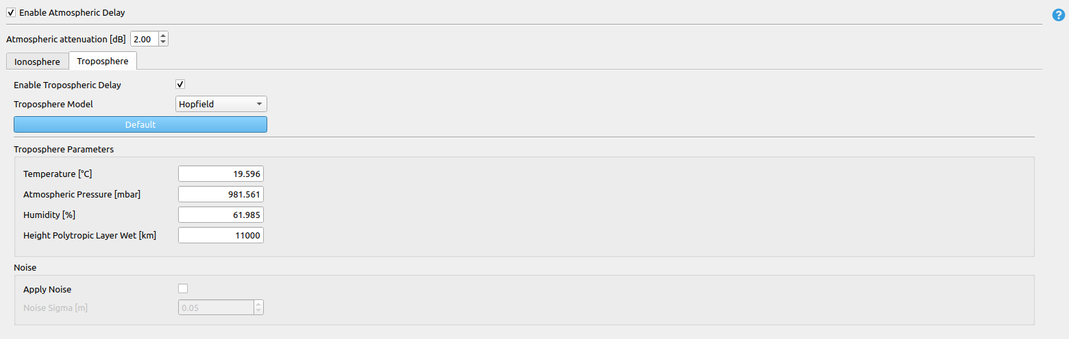 | Apply Noise | Determines, whether AWGN is applied to troposphere-based delays. |