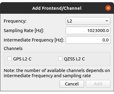 A channel can be added by selecting on the most right tab. This opens the Add Front-End/Channel dialog.