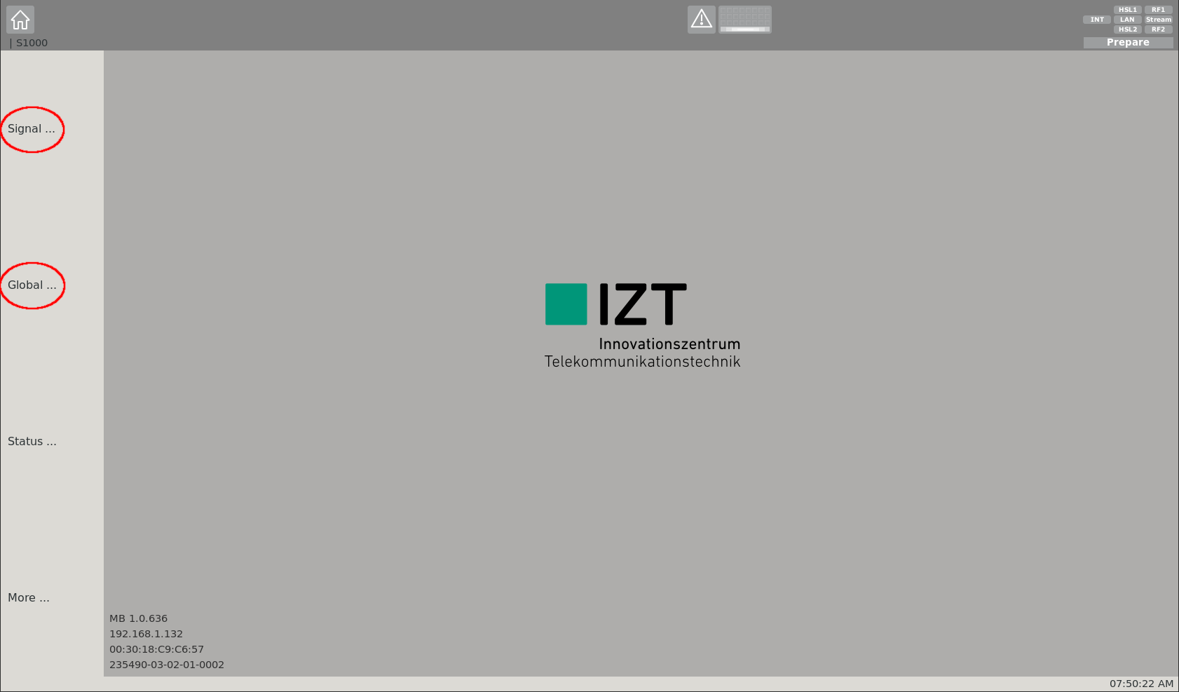 | IZT S1000 GUI Settings | |