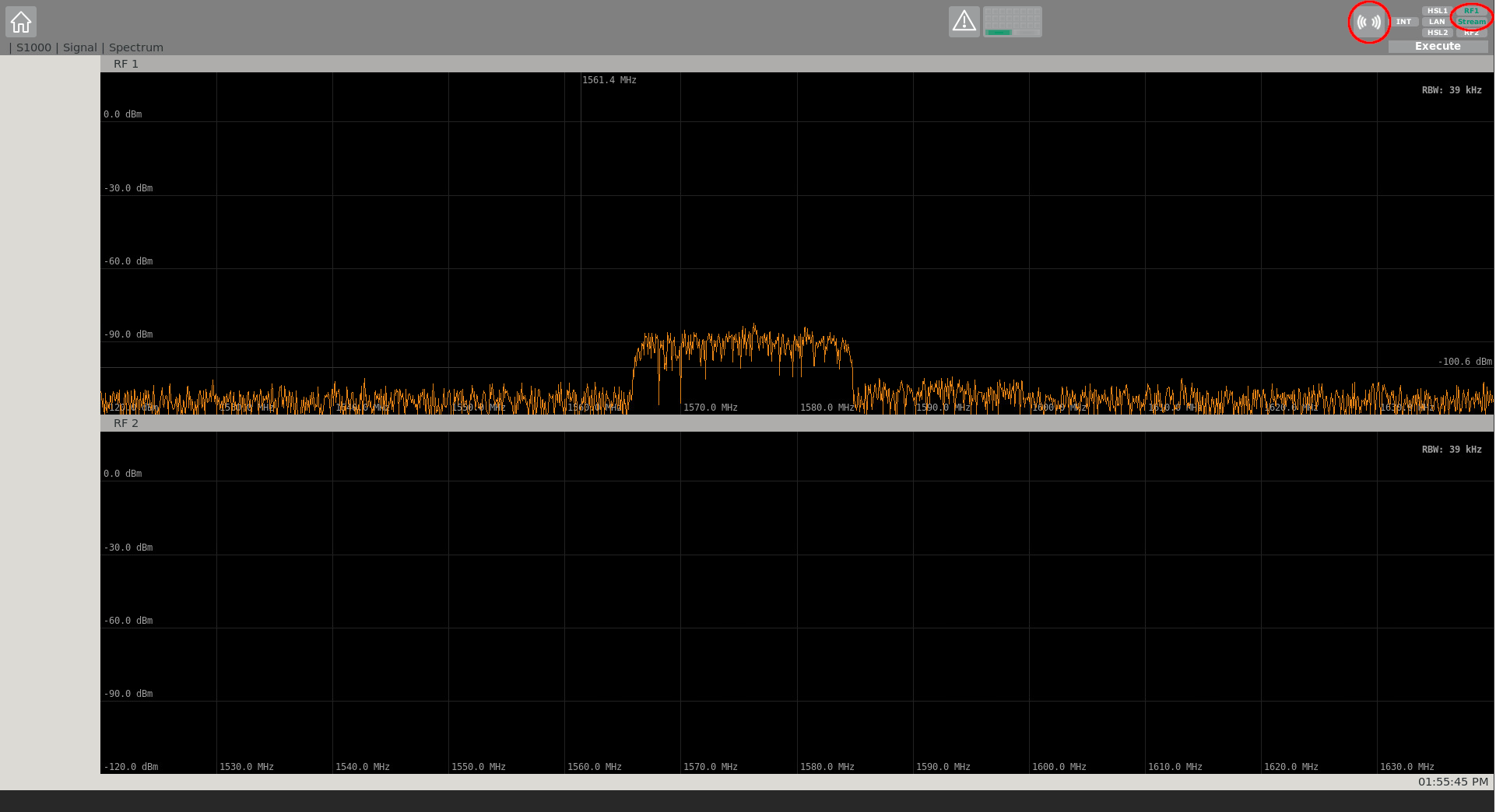 In case RTX mode is used, GNSS signals are immediately upconverted to RF and replayed by the IZT S1000 hardware antenna channels RF1 and RF2. For that, the S1000 GUI is also utilized and automatically configured by GIPSIE via SCPI.