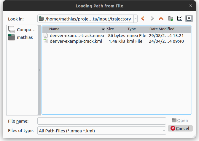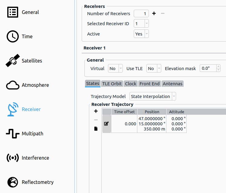 In the Receiver section the trajectory of the receiver will be set. The trajectory can be imported from a kml-file.