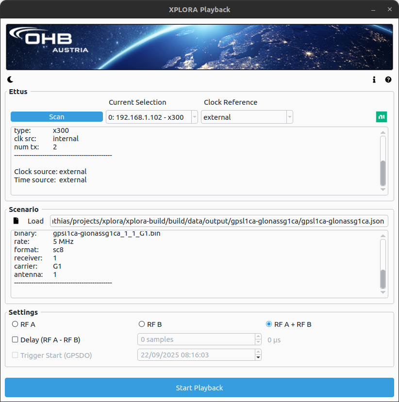 A separate software, called XPLORA Playback can be used in combination with an Ettus (opens new window) hardware (by National Instruments) supporting an ethernet/fiber optics interface. Supported devices are i.a.