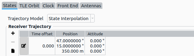 | Receiver Position | The real receiver position, defined as state. Configured in the Receiver tab. |